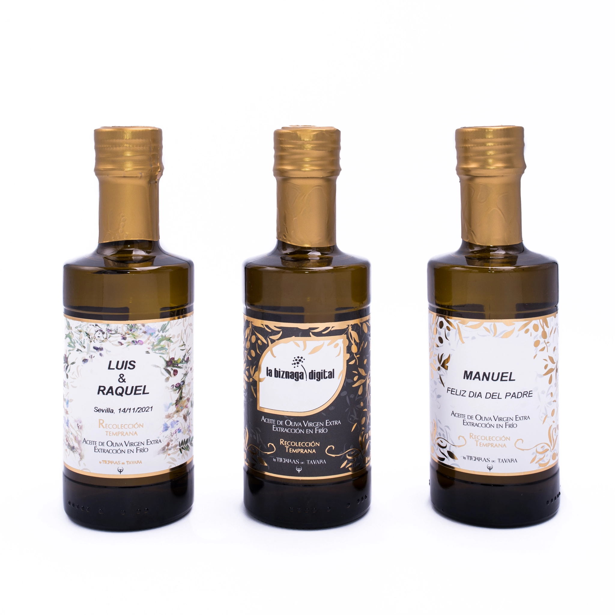 Disfruta del mejor aceite personalizado de Tierras de Tavara para que puedas ofrecer un excepcional aceite de oliva virgen extra con tu marca o con el mensaje que quieras transmitir.
